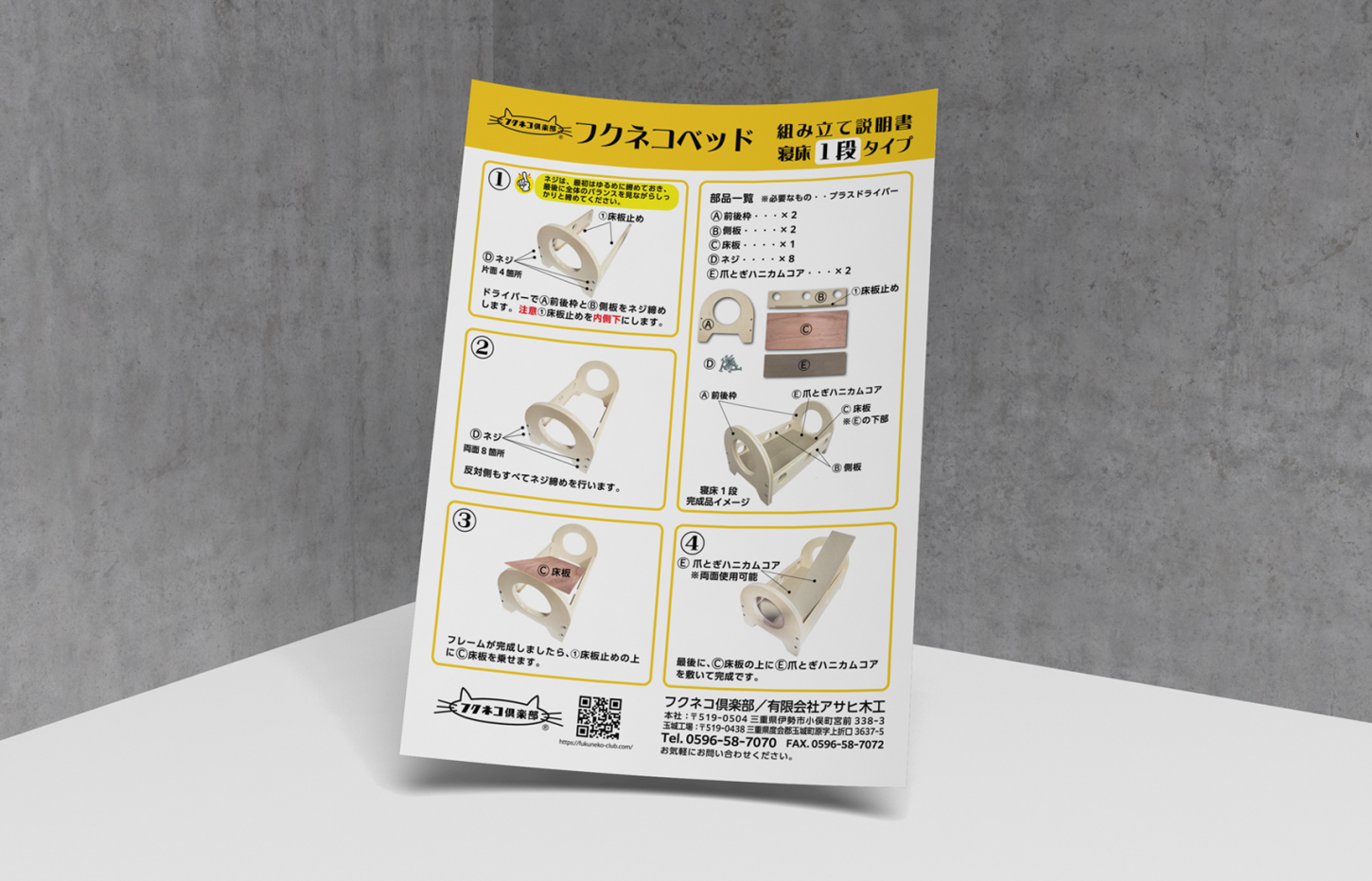 伊勢市 有限会社アサヒ木工様のフクネコベッド 組み立て説明書デザイン