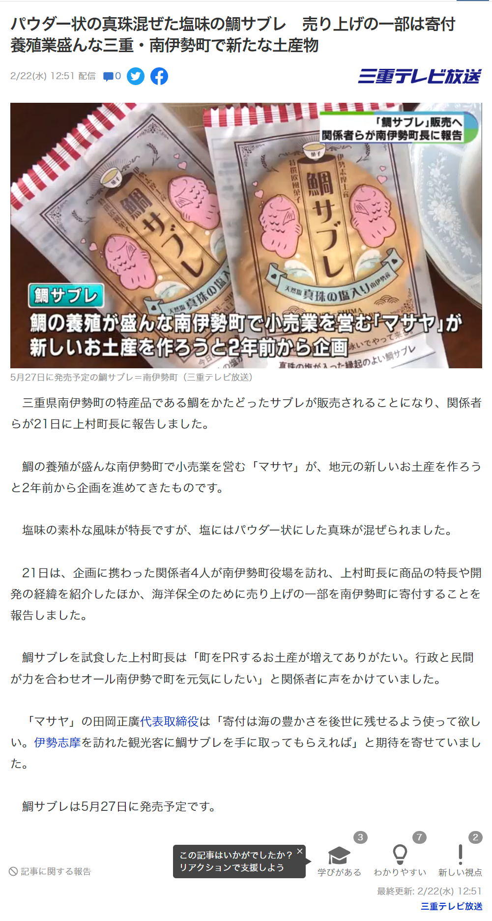 なお、パッケージは三重テレビおよび伊勢新聞でも紹介されました。
